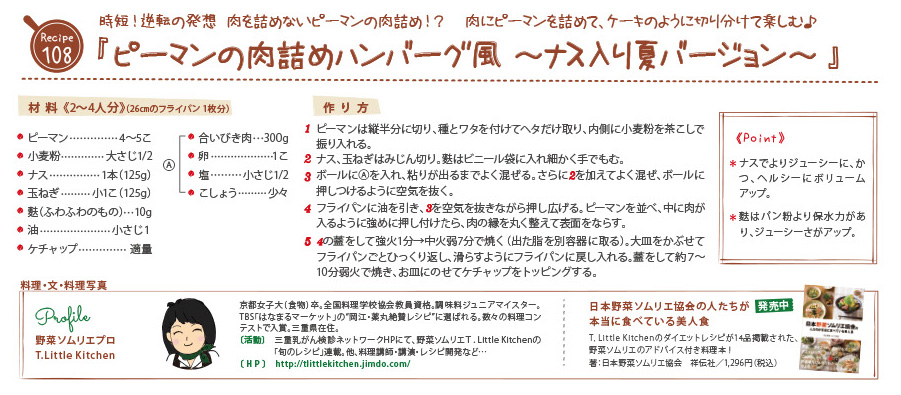 「 ピーマンの肉詰めハンバーグ風 ~ナス入り夏バージョン~ 」のレシピをご紹介!