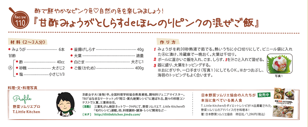 「甘酢みょうがとしらすdeほんのりピンクの混ぜご飯 」のレシピをご紹介!