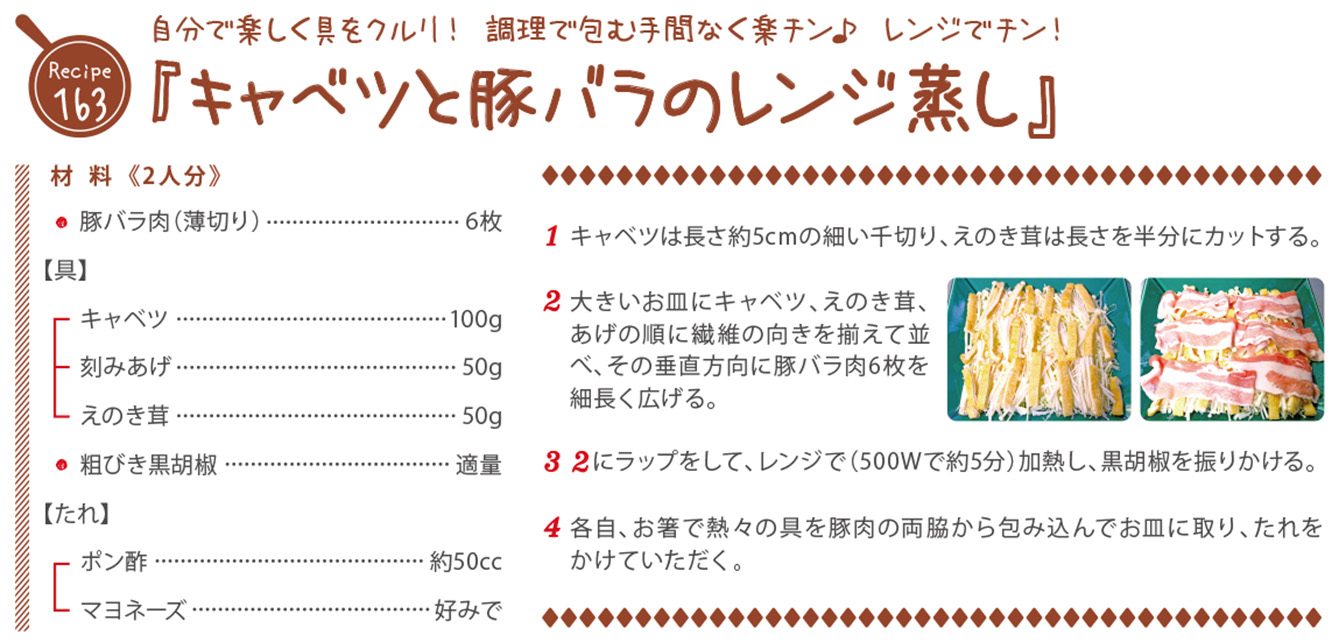『キャベツと豚バラのレンジ蒸し』のレシピをご紹介!
