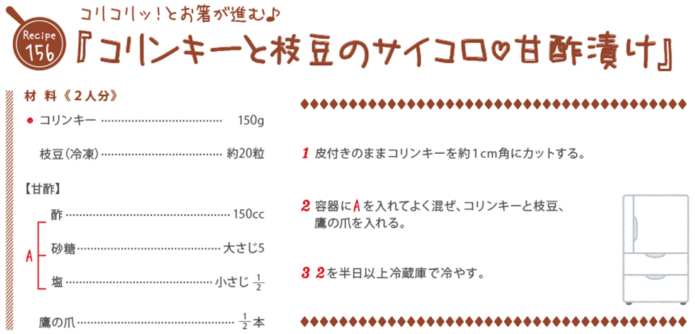 『コリンキーと枝豆のサイコロ♡甘酢漬け』のレシピをご紹介!