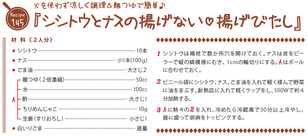 『シシトウとナスの揚げない♡揚げびたし』のレシピをご紹介!