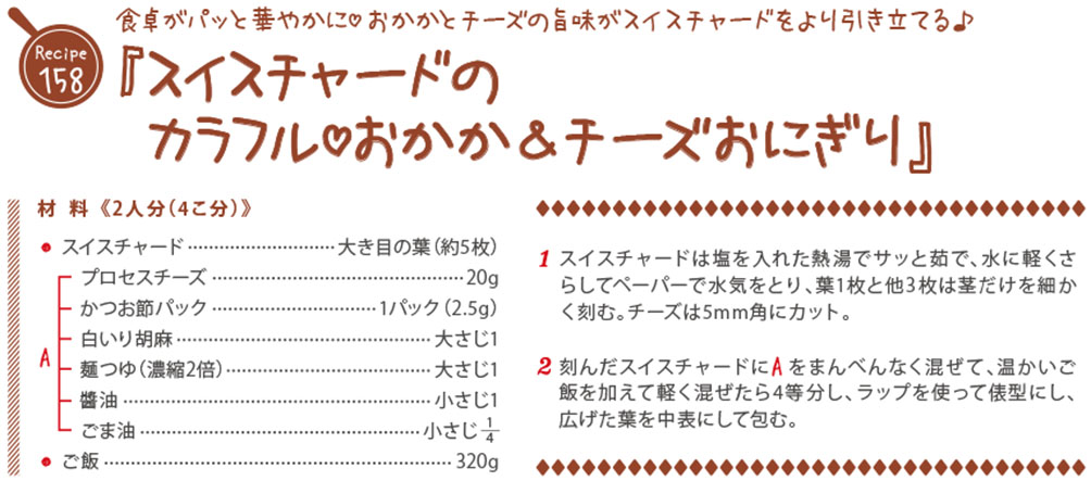 『スイスチャードのカラフル♡おかか&チーズおにぎり』のレシピをご紹介!