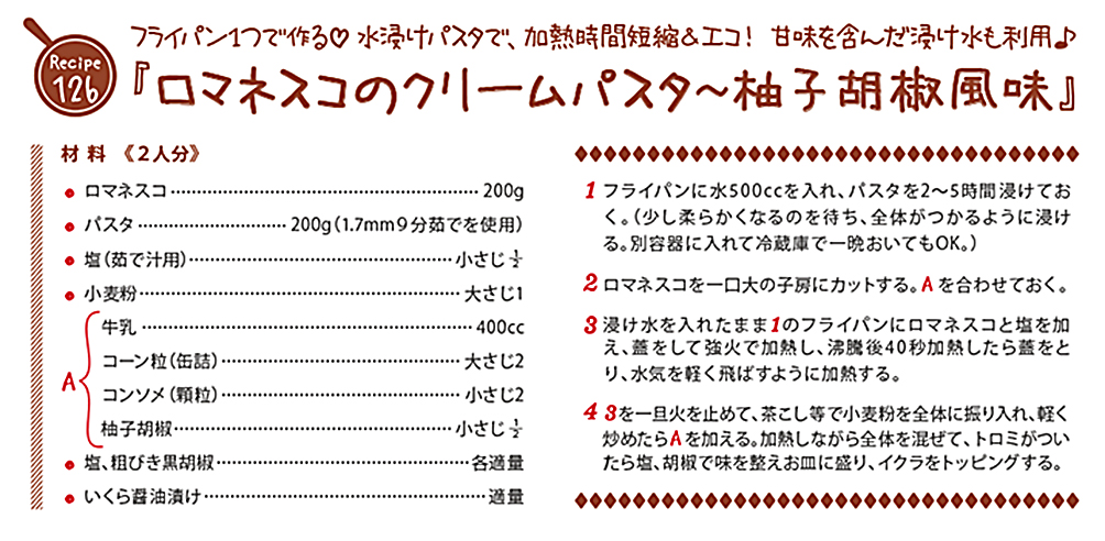 『ロマネスコのクリームパスタ~柚子胡椒風味』のレシピをご紹介!
