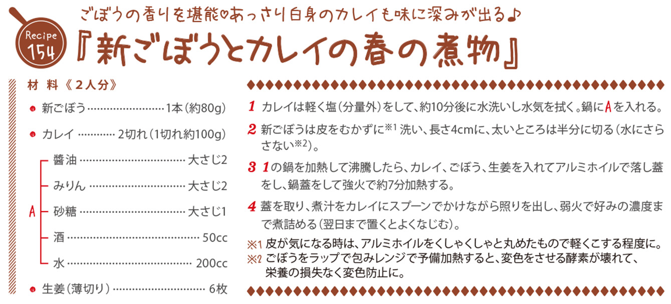 『新ごぼうとカレイの春の煮物』のレシピをご紹介!
