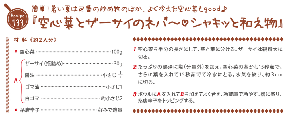 『空心菜とザーサイのネバ~♡シャキッと和え物』のレシピをご紹介!