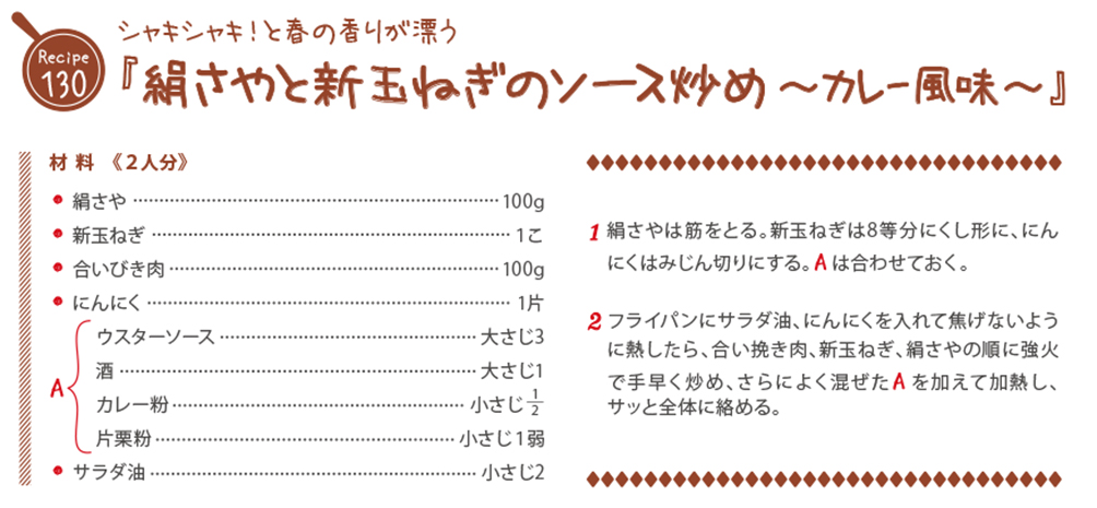 『絹さやと新玉ねぎのソース炒め~カレー風味~』のレシピをご紹介!