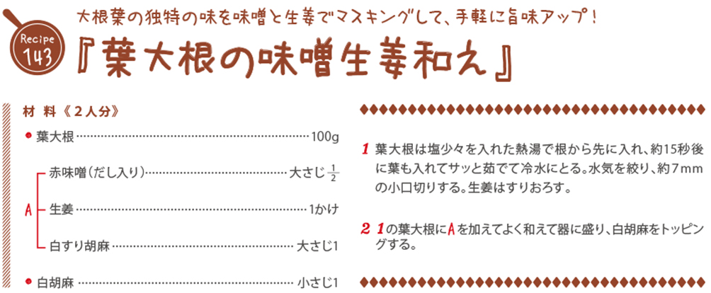 『葉大根の味噌生姜和え』のレシピをご紹介!