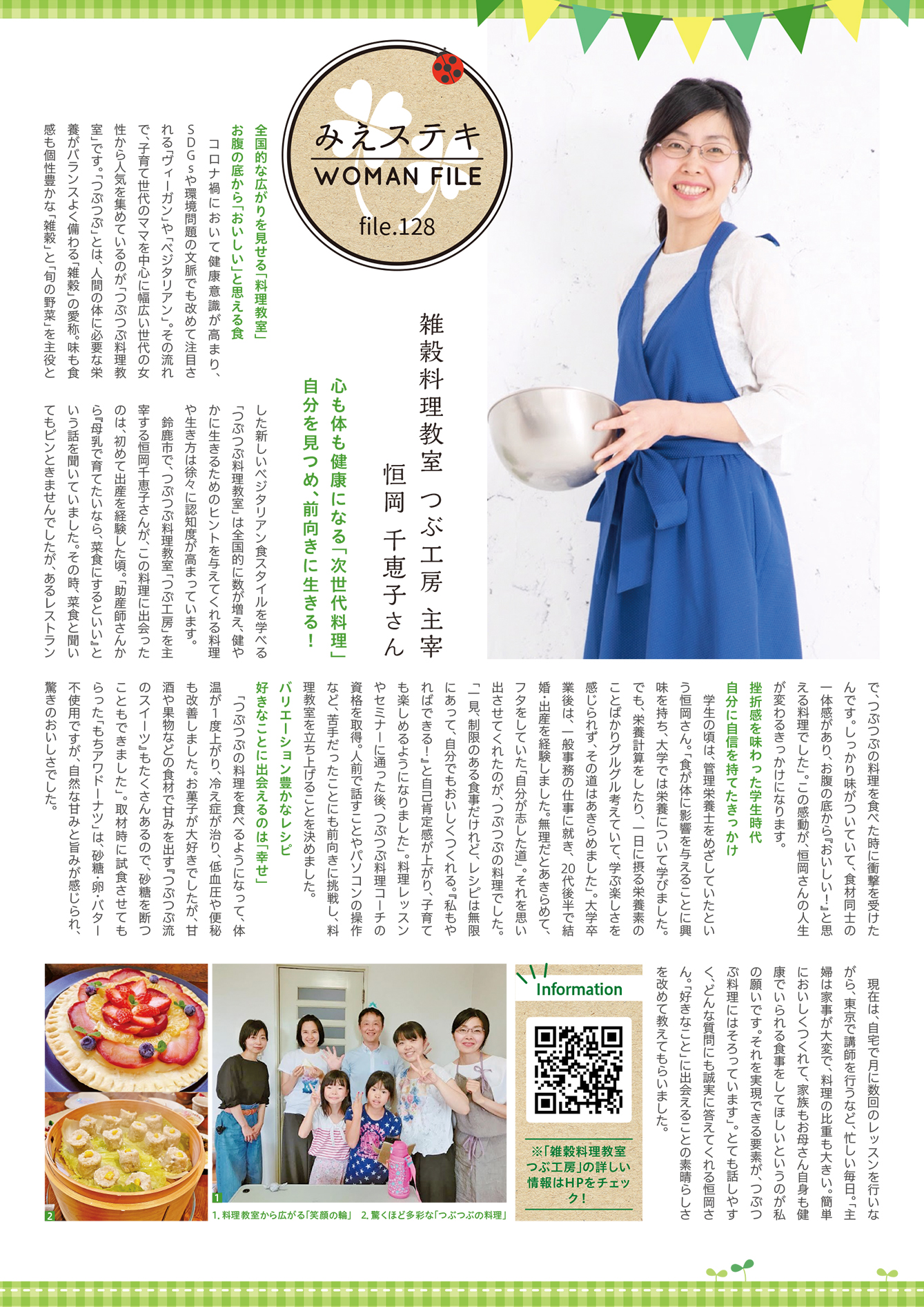 freeK Vol.166(2024年7月号)の「みえステキWOMAN FILE ~file.128」では、雑穀料理教室 つぶ工房 主宰 恒岡 千恵子さんをご紹介します。