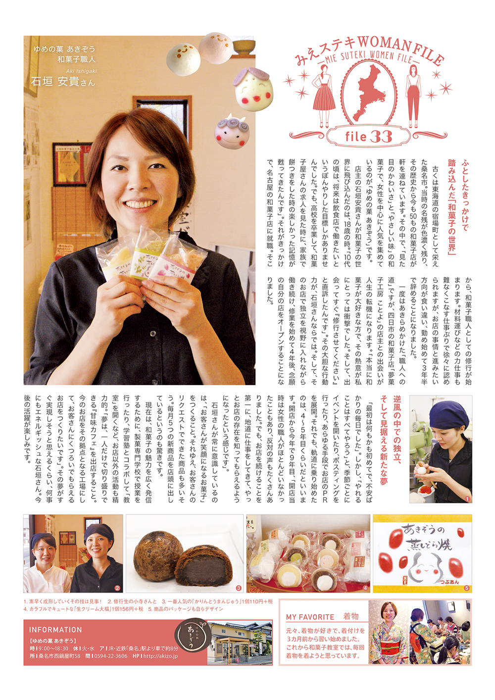 freeK70(2016年7月号)の「みえステキWOMAN FILE ~file.33~」では、