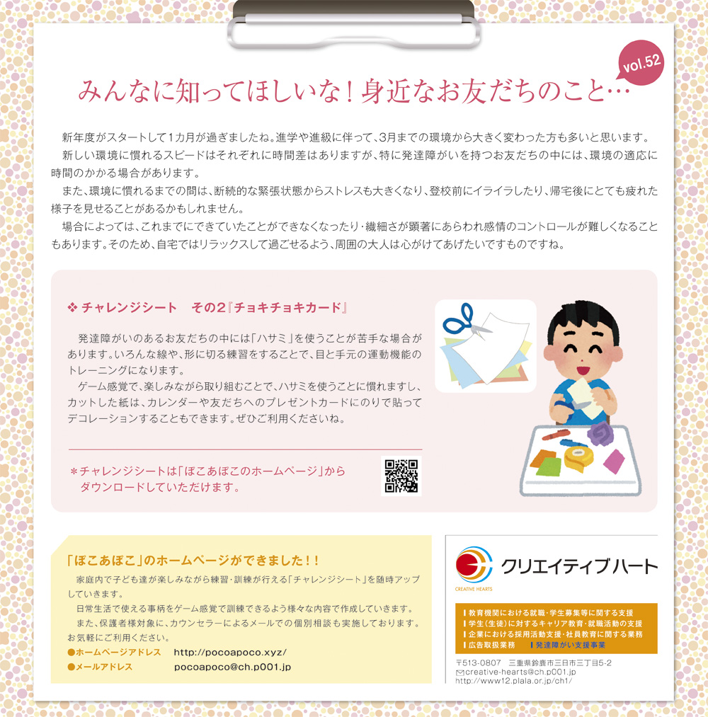 freeK92(5月号)の「みんなに知ってほしいな!身近なお友だちのこと… 」