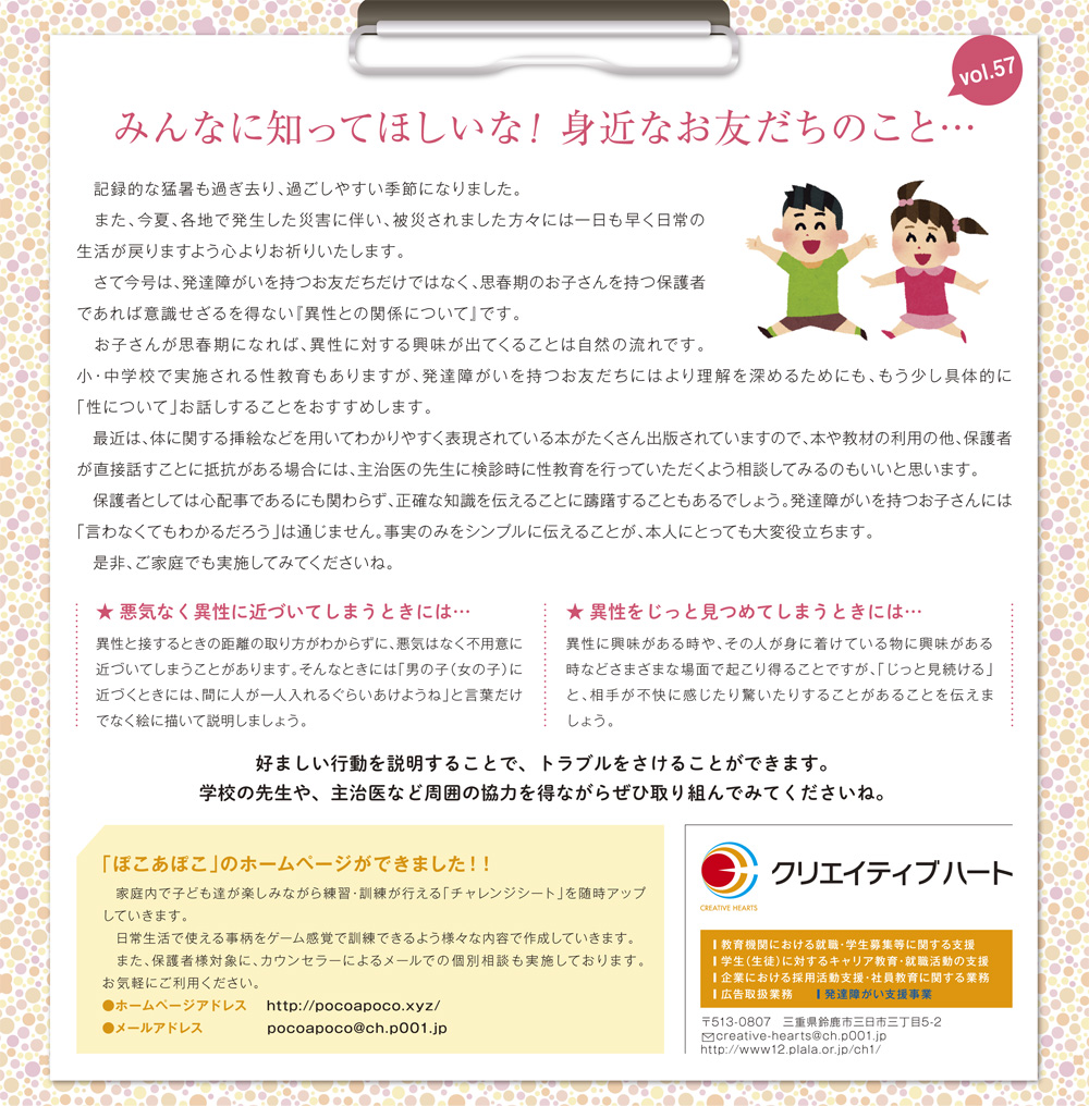 freeK97号(10月号)の「みんなに知ってほしいな!身近なお友だちのこと… 」は、「異性との関係について」という視点の記事になっています。