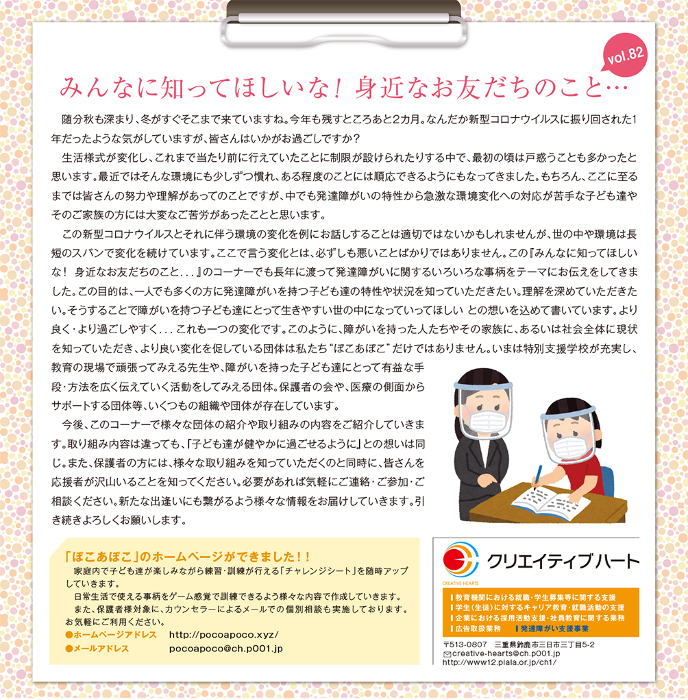 みんなに知ってほしいな!身近なお友だちのこと… vol.82