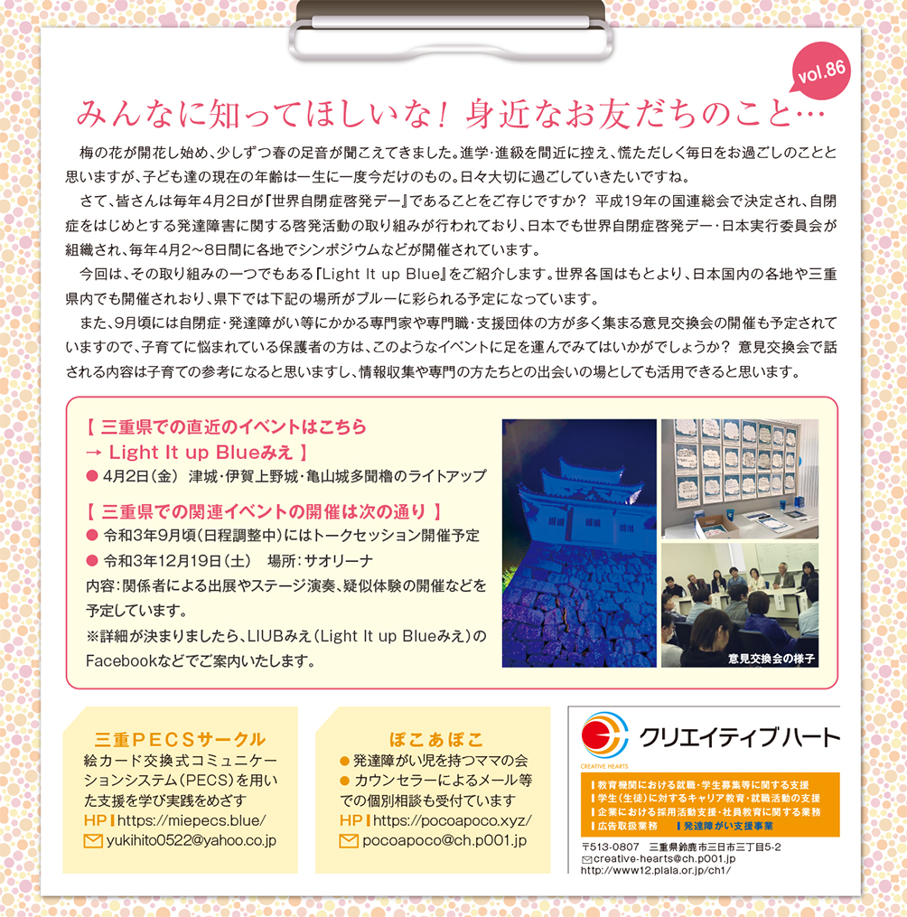 今月は「世界自閉症啓発デー」のお話。さまざまなイベントをきっかけに、自閉症や発達障がいのことを少しでも知っていただけるとうれしいです!