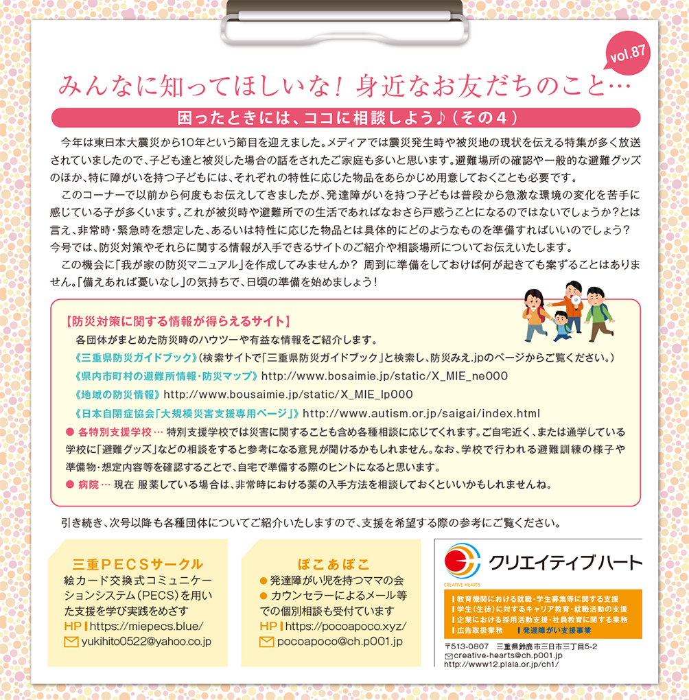 freeK Vol.127(2021年4月号)の「みんなに知ってほしいな!身近なお友だちのこと… 」です。