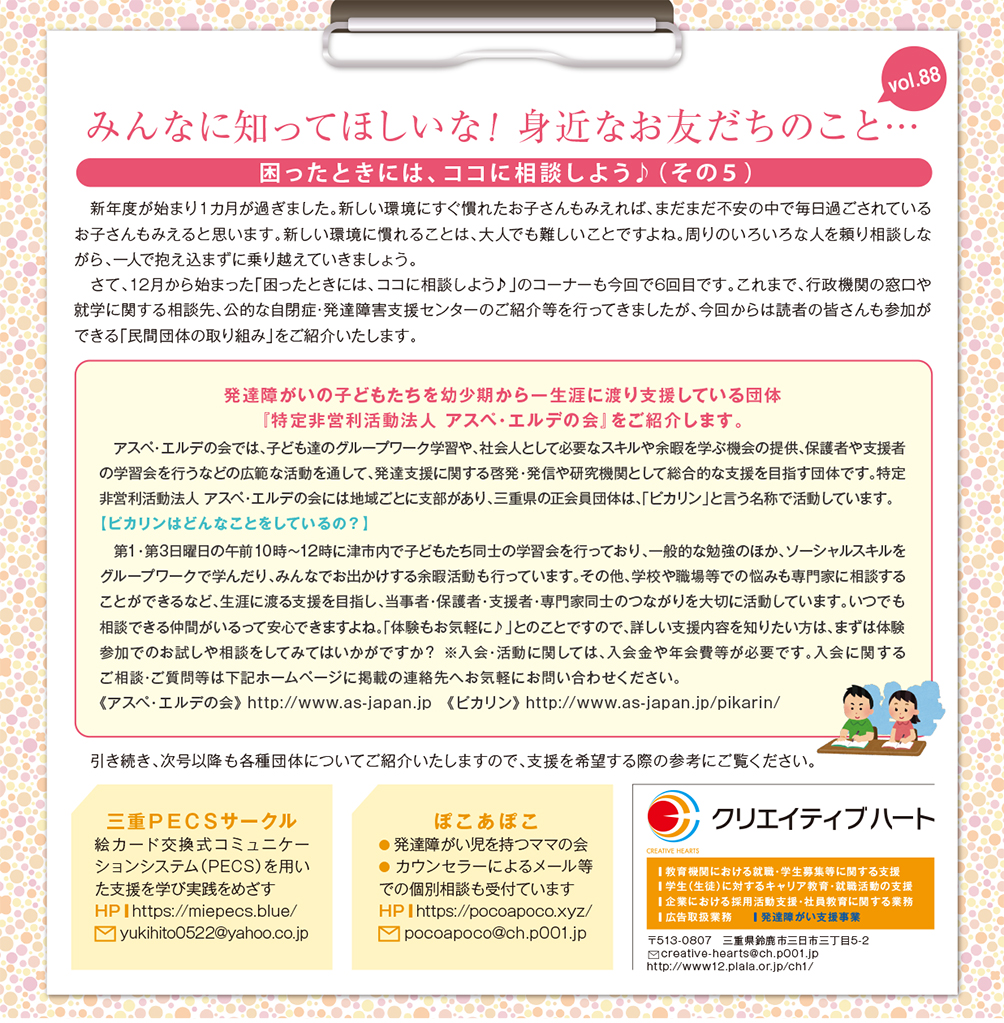 みんなに知ってほしいな!身近なお友だちのこと… vol.88