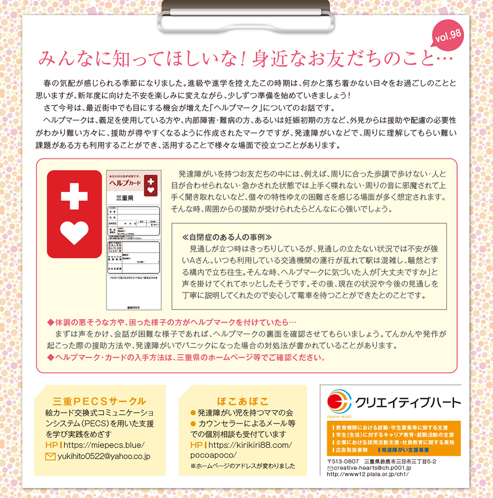 みんなに知ってほしいな!身近なお友だちのこと… vol.98