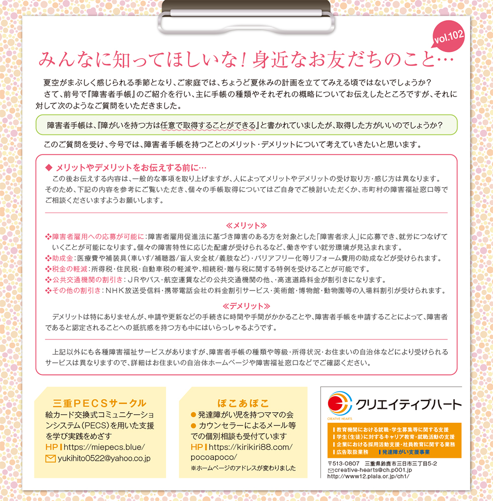 みんなに知ってほしいな!身近なお友だちのこと… vol.102