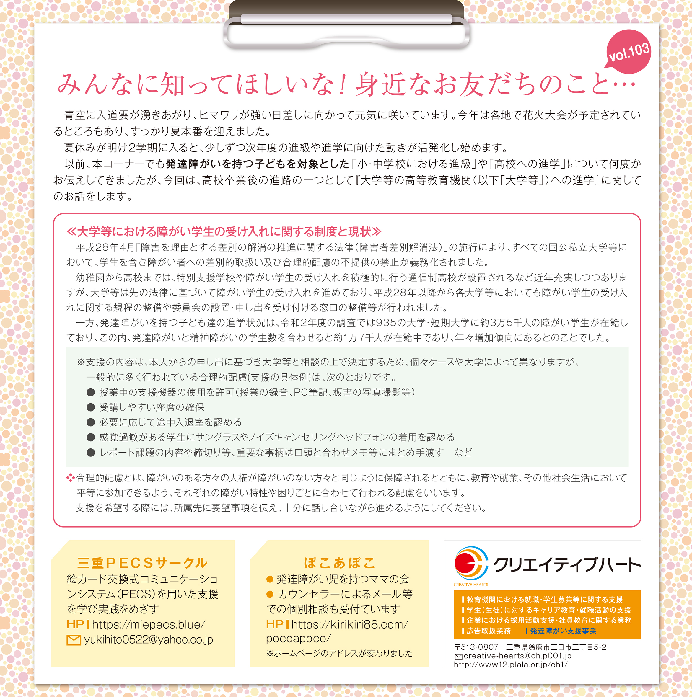 freeK Vol.143(2022年8月号)の「みんなに知ってほしいな!身近なお友だちのこと… 」です。
