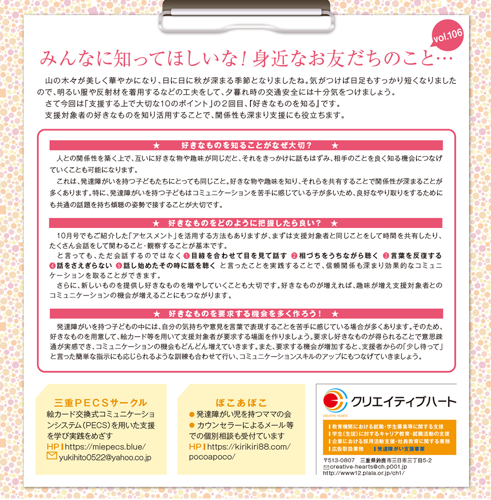 freeK Vol.146(2022年11月号)の「みんなに知ってほしいな!身近なお友だちのこと… 」です。