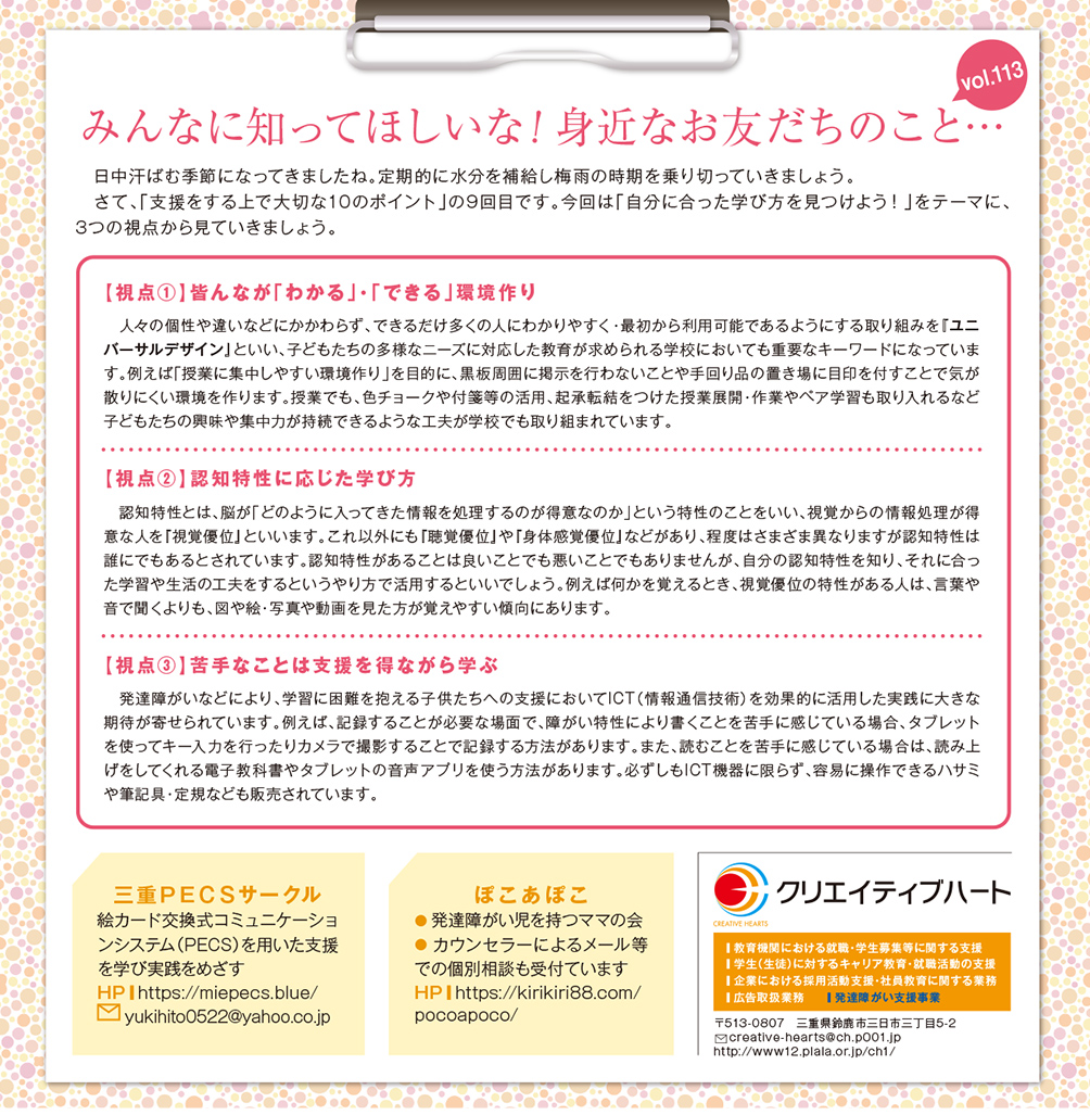 freeK Vol.153(2023年6月号)の「みんなに知ってほしいな!身近なお友だちのこと… 」です。