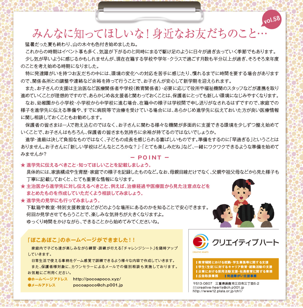 freeK98号(11月号)の「みんなに知ってほしいな!身近なお友だちのこと… 」は、「進学などの環境への変化について」という視点の記事になっています。