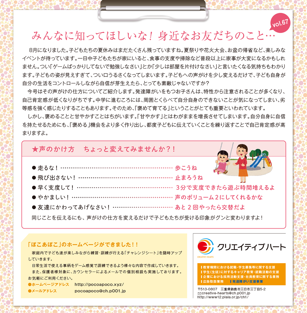 みんなに知ってほしいな!身近なお友だちのこと… vol.67
