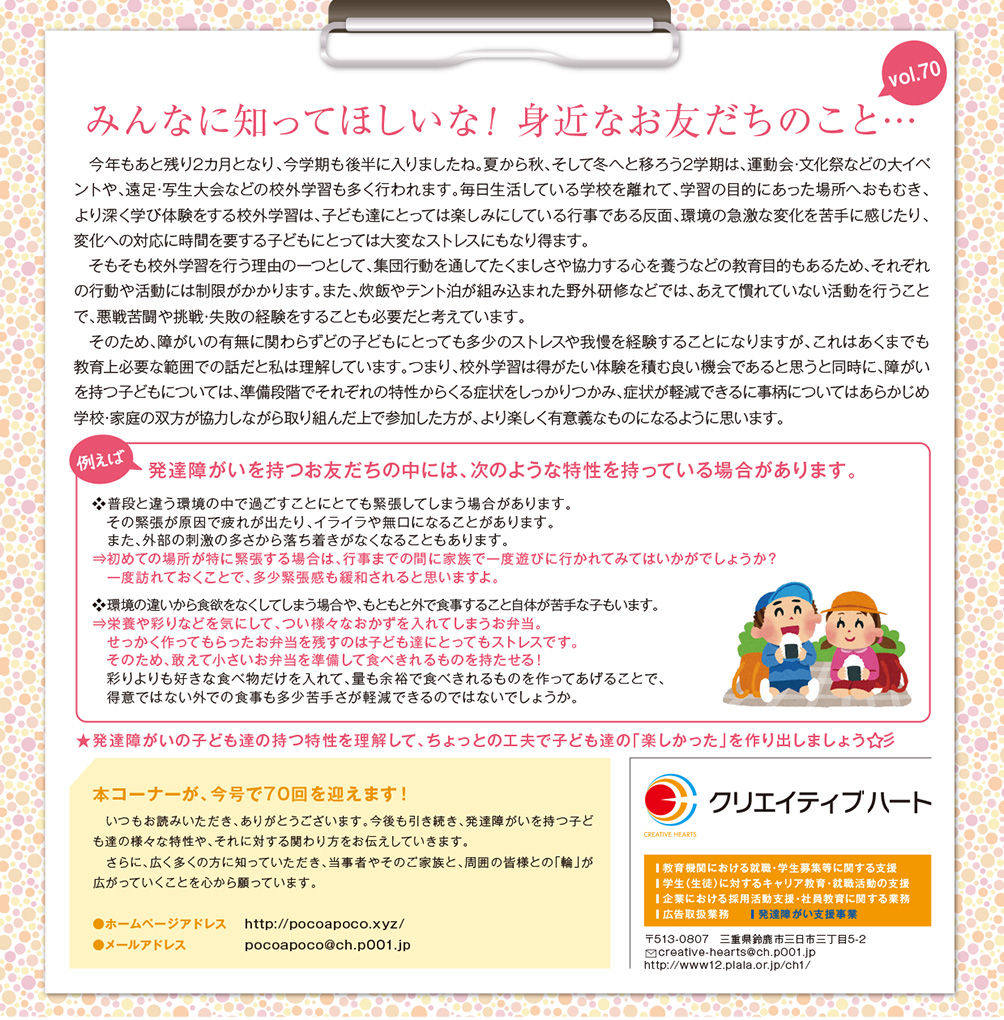 みんなに知ってほしいな!身近なお友だちのこと… vol.70