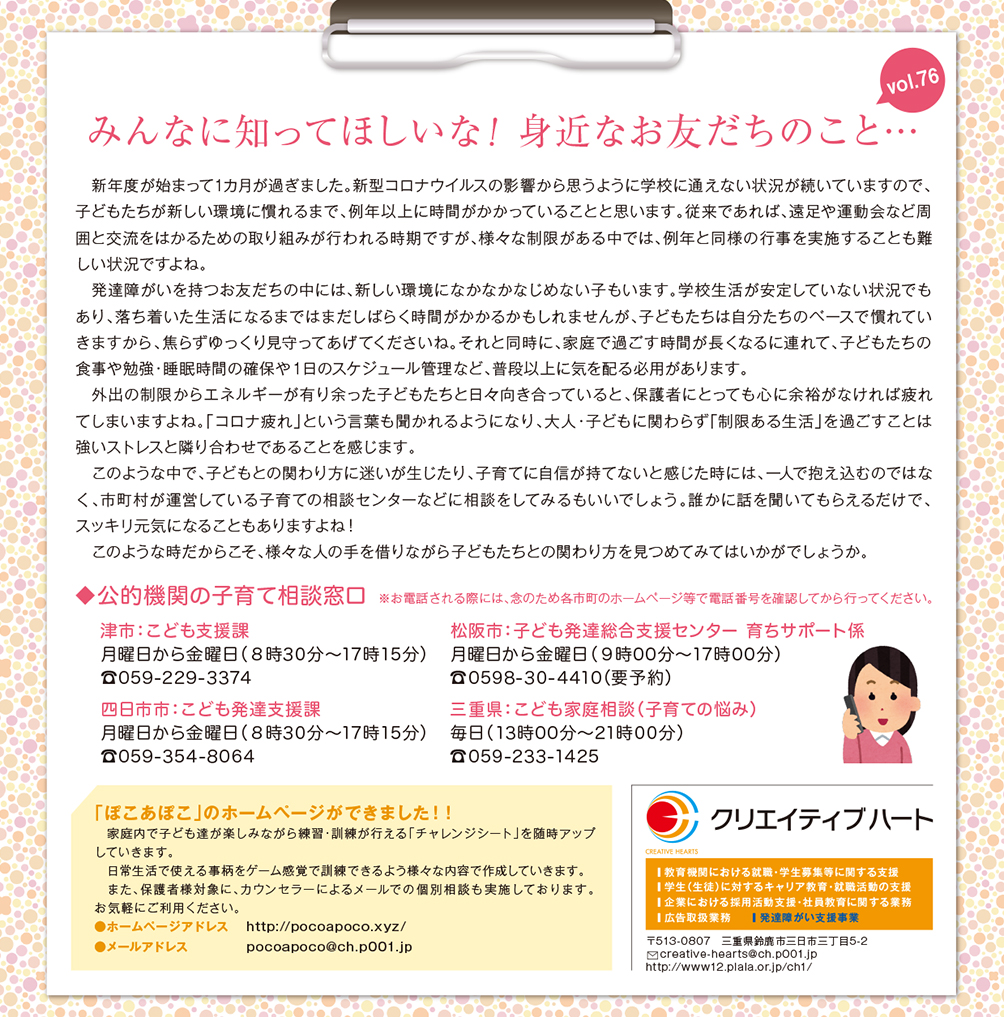 みんなに知ってほしいな!身近なお友だちのこと… vol.76