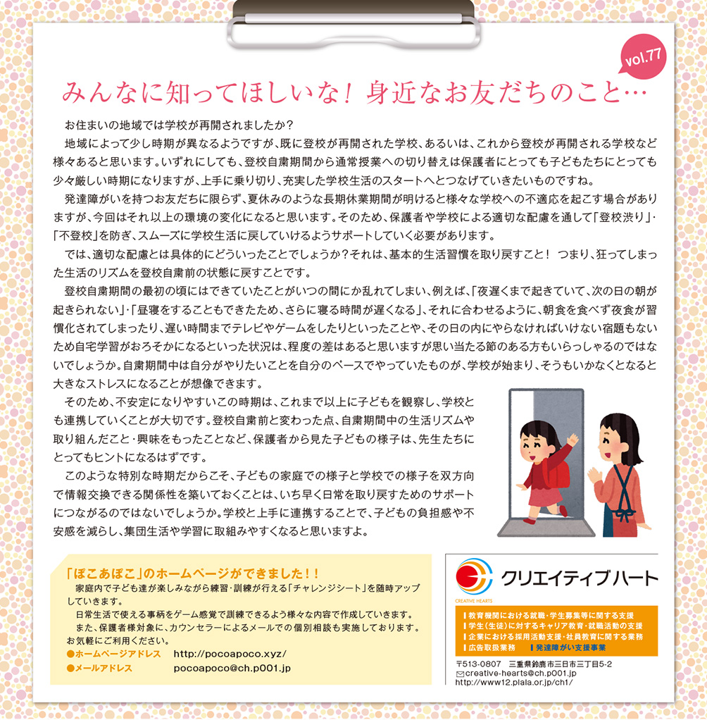 みんなに知ってほしいな!身近なお友だちのこと… vol.77
