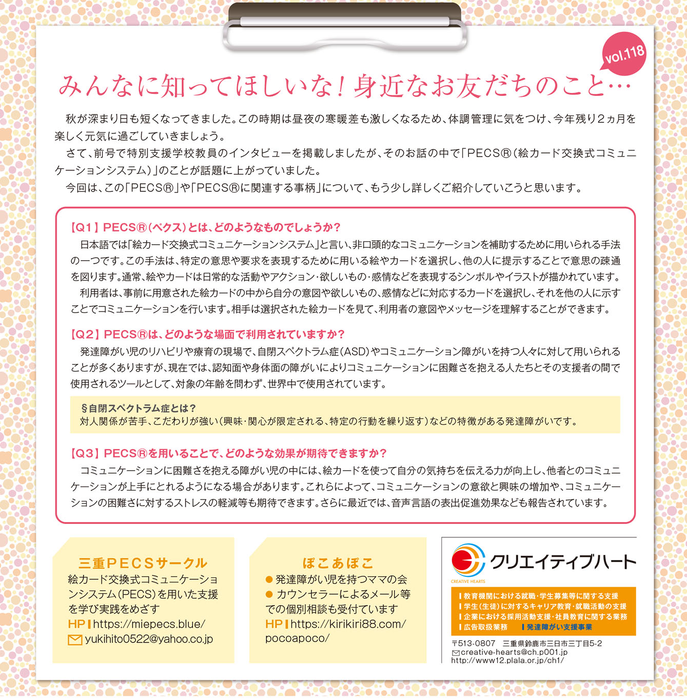 みんなに知ってほしいな!身近なお友だちのこと… vol.118