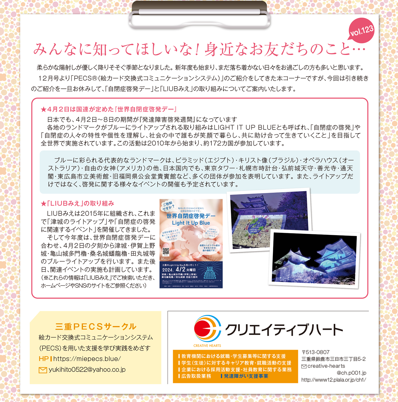 みんなに知ってほしいな!身近なお友だちのこと… vol.123