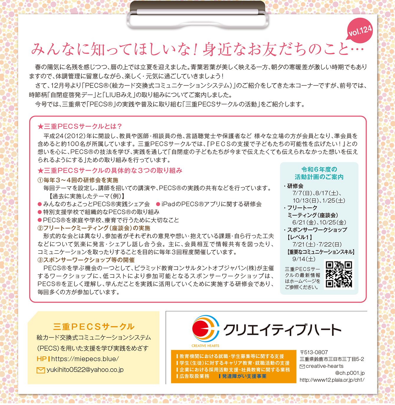 freeK Vol.164(2024年5月号)の「みんなに知ってほしいな!身近なお友だちのこと… 」です。