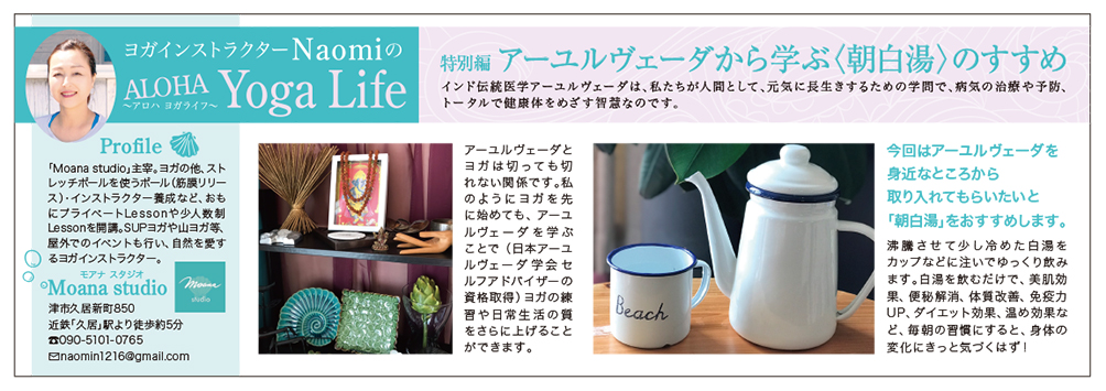 freeK Vol.128(5月号)の「ヨガインストラクターNaomiのALOHA Yoga Life(アロハ ヨガライフ)」では、