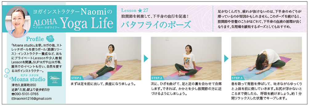 freeK Vol.120(9月号)の「ヨガインストラクターNaomiのALOHA Yoga Life(アロハ ヨガライフ)」では、