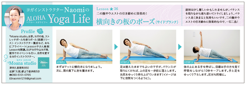 freeK Vol.131(8月号)の「ヨガインストラクターNaomiのALOHA Yoga Life(アロハ ヨガライフ)」では、