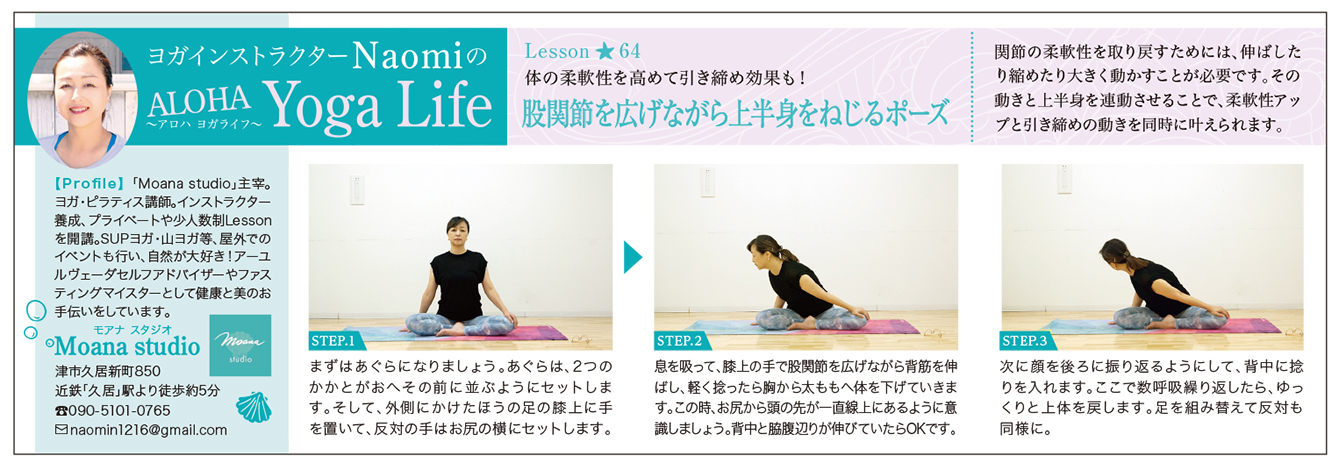 freeK Vol.163(4月号)の「ヨガインストラクターNaomiのALOHA Yoga Life(アロハ ヨガライフ)」をご紹介します!