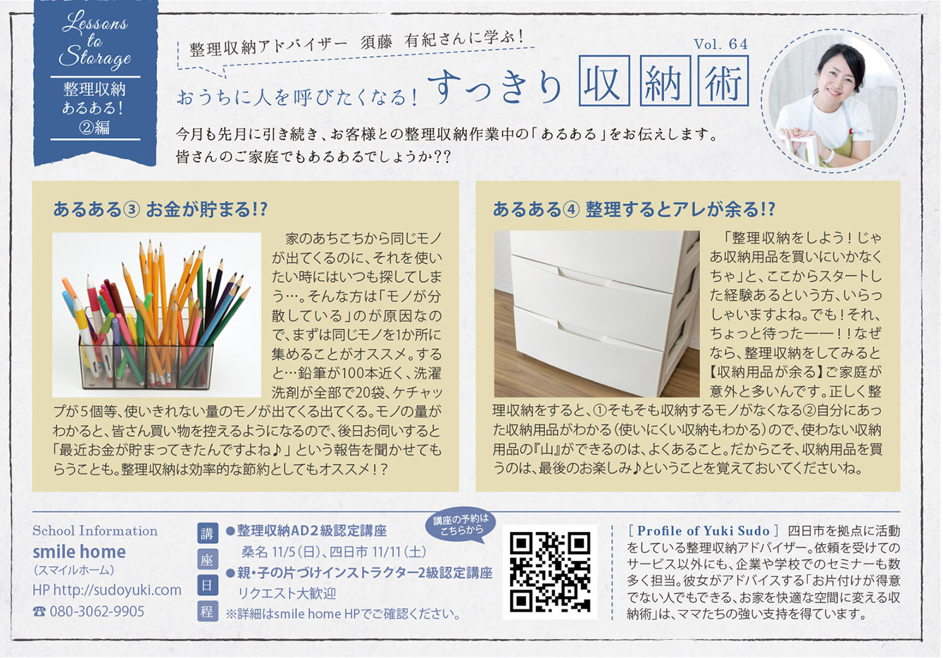 freeK Vol.158(2023年11月号)の整理収納アドバイザー 須藤 有紀さんに学ぶ! 「すっきり収納術 vol.63」。