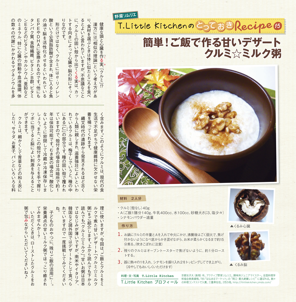 freeK14(2011年11月号)の野菜ソムリエプロ T.Little Kitchenさんのとっておきレシピ15 では、