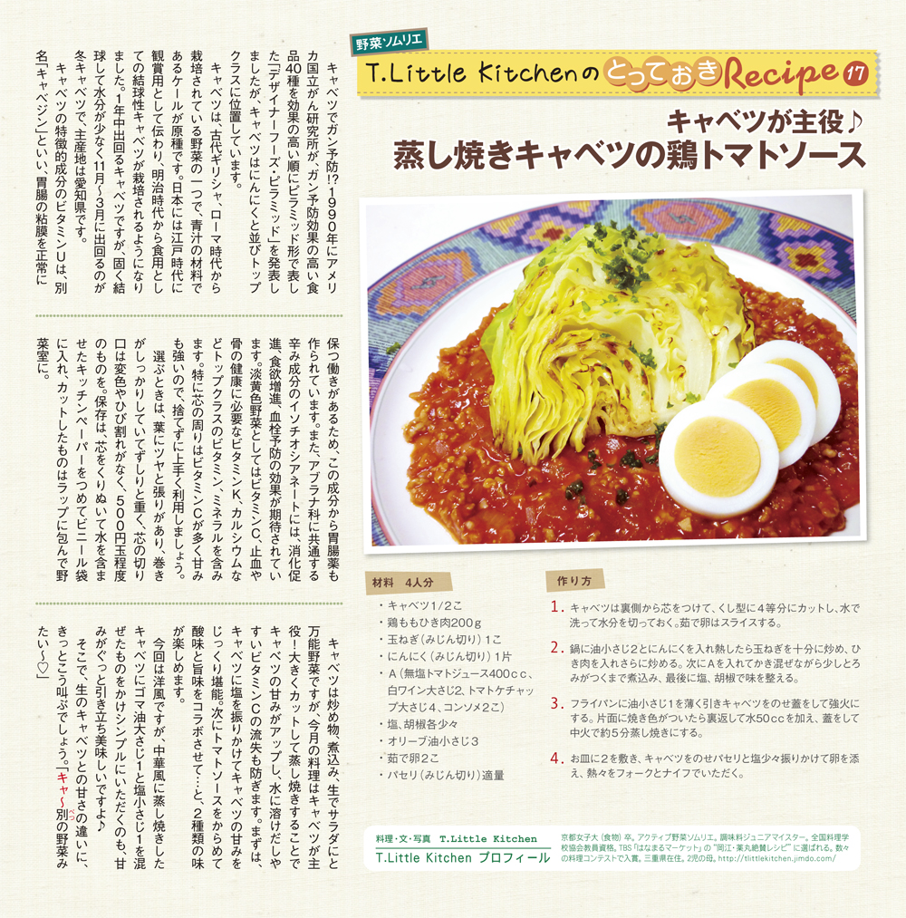 freeK16(2012年1月号)の野菜ソムリエプロ T.Little Kitchenさんのとっておきレシピ17 では、