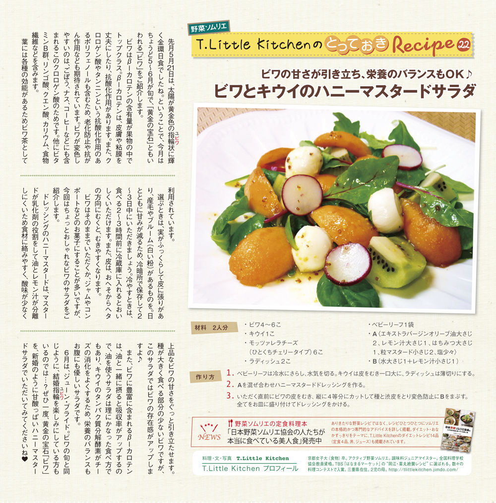 freeK21(2012年6月号)の野菜ソムリエプロ T.Little Kitchenさんの「とっておきレシピ」をご紹介。