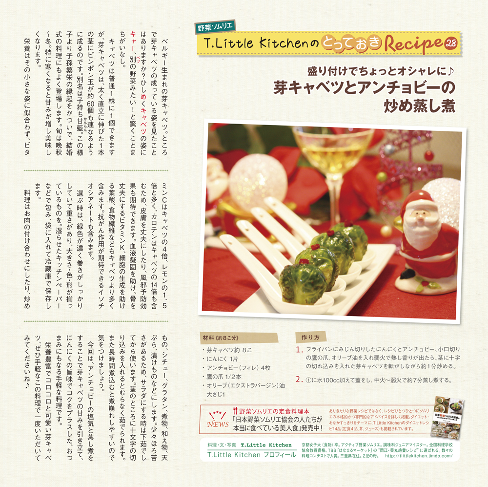 freeK27(2012年12月号)の野菜ソムリエプロ T.Little Kitchenさんの「とっておきレシピ」をご紹介。