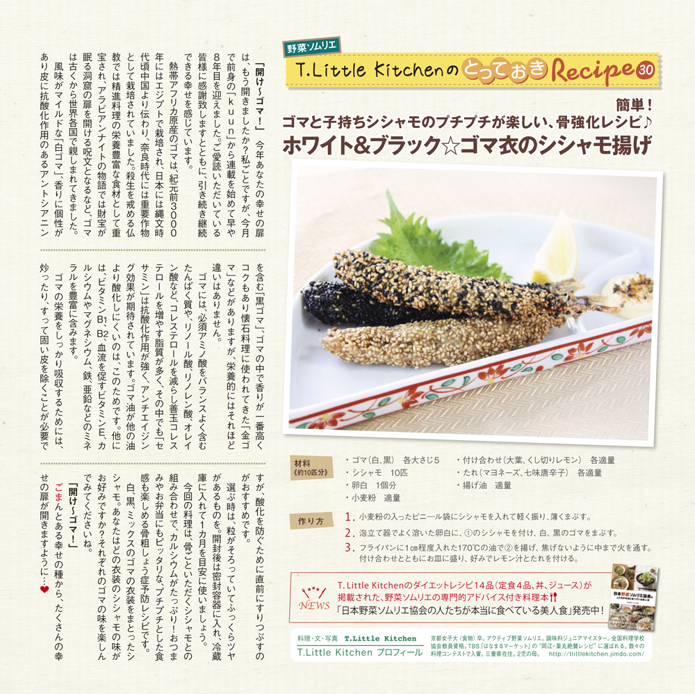 freeK29(2013年2月号)の野菜ソムリエプロ T.Little Kitchenさんの「とっておきレシピ」をご紹介。