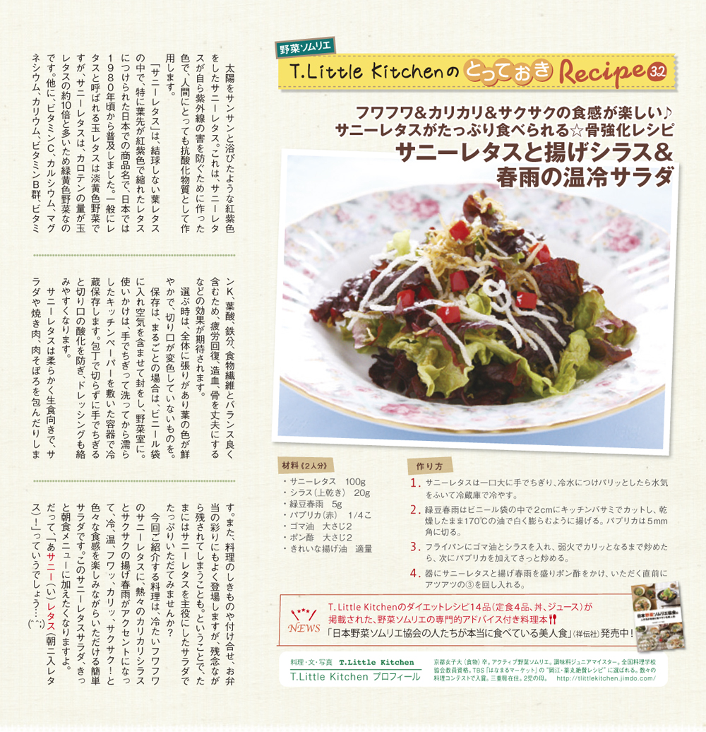 freeK31(2013年4月号)の野菜ソムリエプロ T.Little Kitchenさんの「とっておきレシピ」をご紹介。