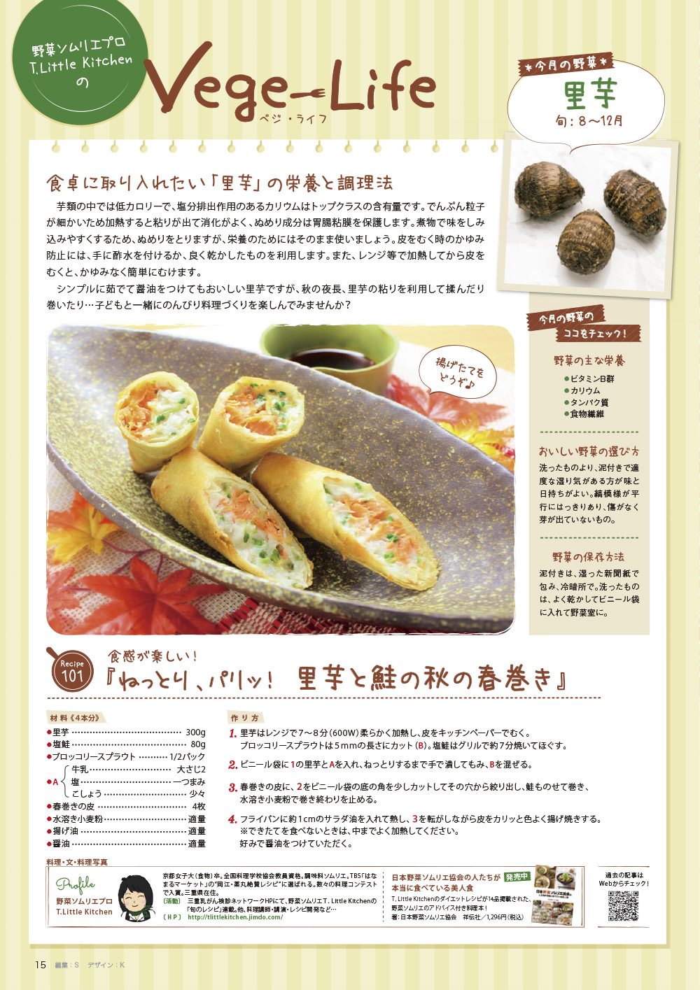 freeK98(11月号)の「野菜ソムリエプロ T.Little KitchenのVege-Life(ベジ・ライフ)」では、食感が楽しい「ねっとり、パリッ! 里芋と鮭の秋の春巻き」のレシピをご紹介。