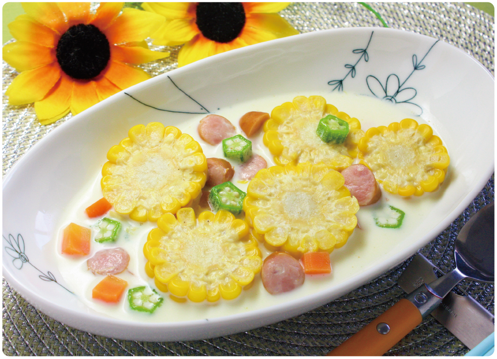 『トウモロコシの冷製♡ひまわりスープ』のレシピをご紹介します!