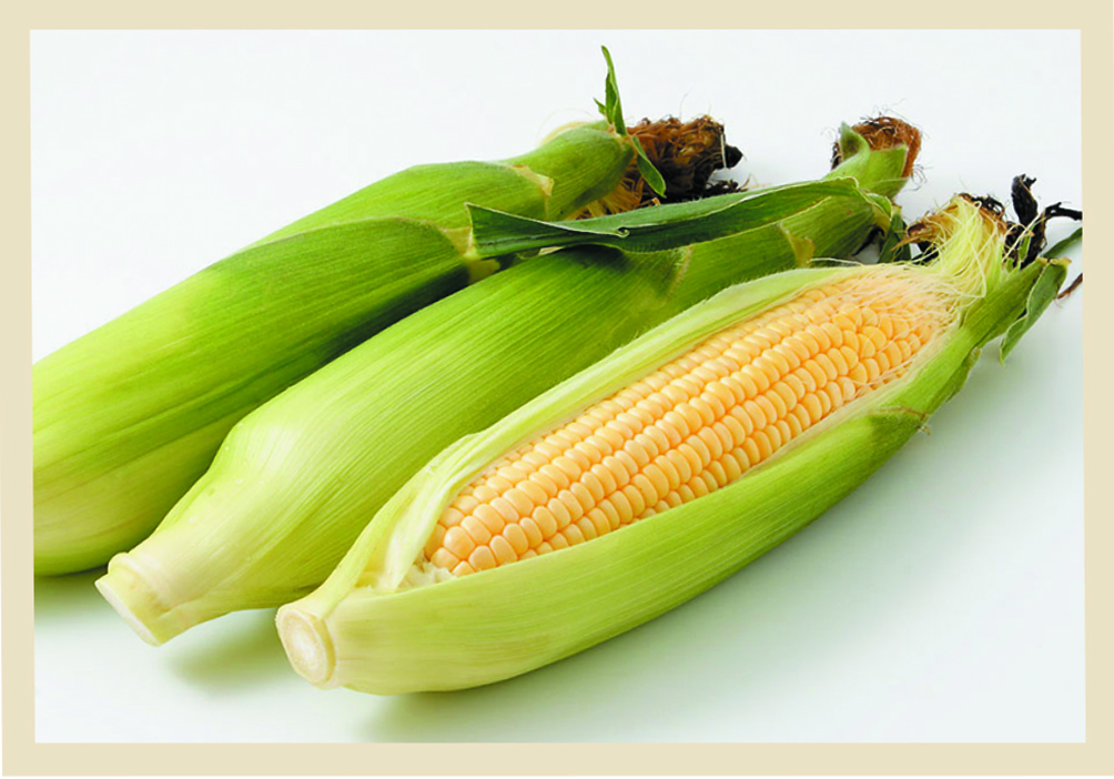 トウモロコシは鮮度が命!「お湯を沸かしてから採りに行け」といわれるほど甘味が抜けるのが早く、30℃で24時間後には半減するといわれています。米、小麦と並ぶ世界三大穀物のトウモロコシは、種でもあり、実でもあり、ビタミンB1が効率よく糖質をエネルギーに変えるため、栄養バランスのいいエネルギーの補給源です。牛乳と合わせるとビタミンB2がタンパク質の代謝も助けるため、朝食におすすめです。一粒ずつ包んでいる皮は、不溶性の食物繊維で便秘の解消にも役立ちます。ビタミンやミネラルなどの栄養は、特に胚芽の部分(粒の中央根元あたり)に多いため、粒をはずすときは根元からしっかりとりましょう。