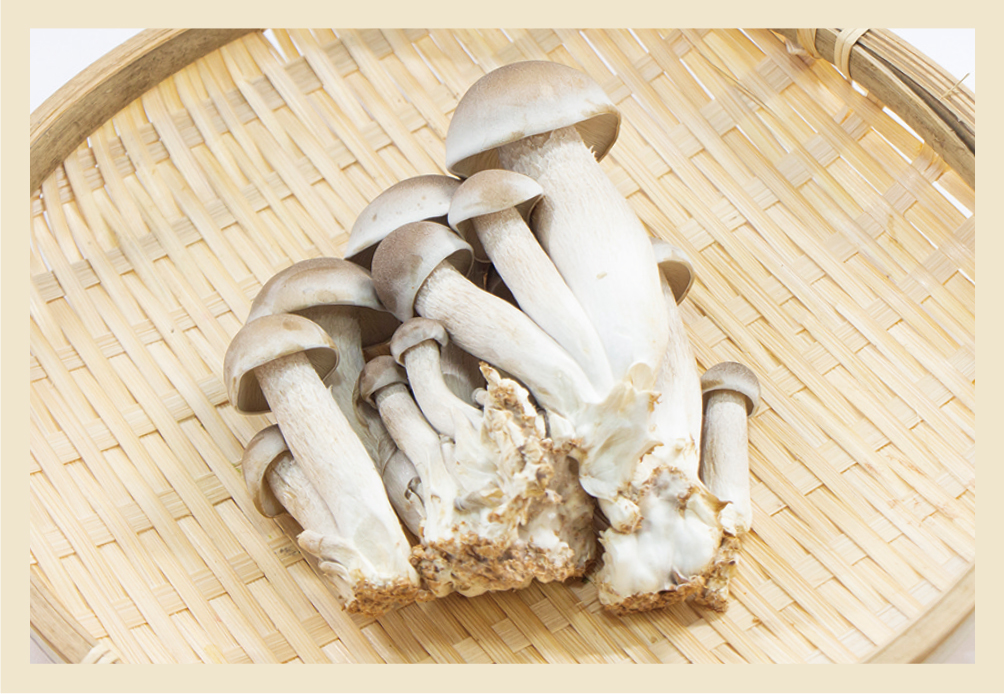 1998年、三重県にて初めて商業用人工栽培に成功した「ハタケシメジ」。名前のとおり畑に生えるきのこですが、野生種が少なくなり人工栽培も難しいきのこでした。また、昔から「香り松茸、味しめじ」といいますが、ハタケシメジはこの味のいい「本しめじ」に一番近縁のきのこで、本しめじに似た風味と旨味があります。クセもなく日持ちがよく、加熱後もシャキシャキとした食感が残るのが特徴で、炒め物、煮物など和洋中いろいろな料理で楽しめます。免疫を高めるβ-グルカンが他のきのこよりも多く、三重大の動物実験では、市販8種のきのこより、がん細胞の成長を抑える効果や血圧を下げる働きの高いことが認められ、健康食品も作られています。※三重県産は、地物コーナーや産直施設等で販売。京都産は「丹波しめじ」という名で販売されています。