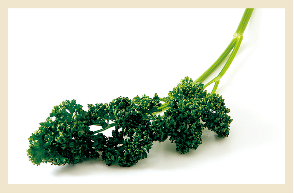 今回で連載16年目になりました。今月は「パセリ」です。付け合わせとして名わき役なのに残されがちな運命のパセリ。しかし、小さな体にぎゅっと詰まった栄養価をもっているパセリは、捨てるのがもったいない野菜です。抗酸化作用のあるβ-カロテンは人参と同量含み、風邪予防、美肌効果のあるビタミンCは、野菜中トップクラス!の含有量です。ミネラルも豊富でバランスよく含み、独特の香りには、食欲増進や疲労回復、匂いの強い料理の後にいただくと口臭予防の効果も期待されます。スープの他、かき揚げ、パスタ、オムレツ、マヨネーズなどに混ぜて、上手く料理に利用しましょう。