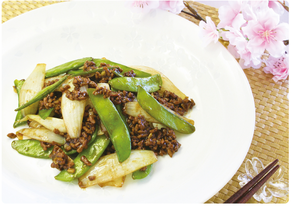 『絹さやと新玉ねぎのソース炒め~カレー風味~』のレシピをご紹介します!