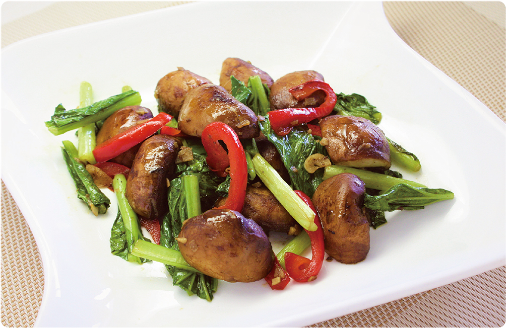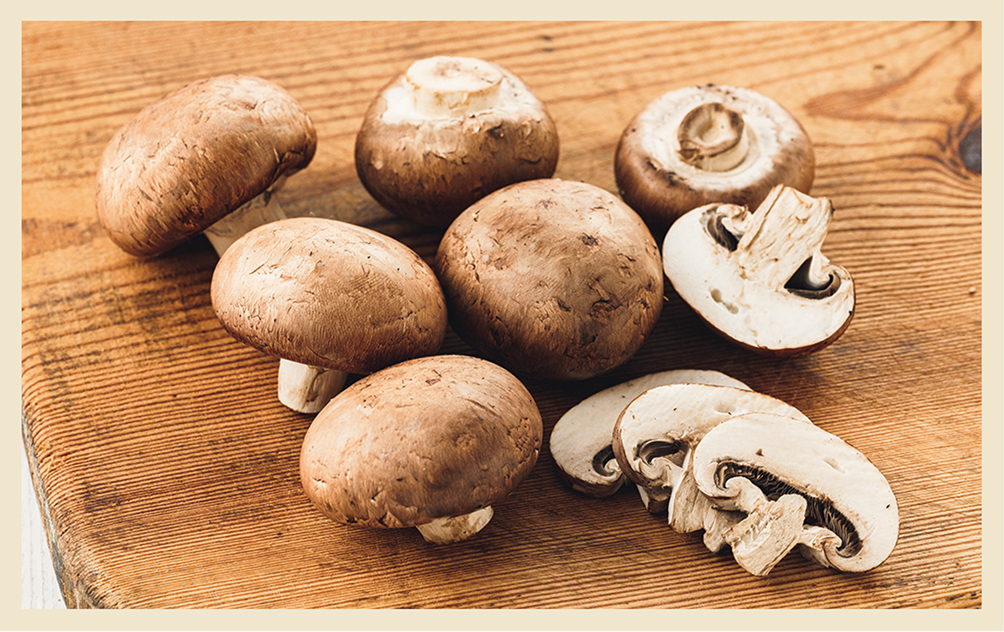 世界一の生産量と消費量を誇るキノコ「マッシュルーム」。日本ではまだ消費量は少ないですが、欧米では一般的なキノコです。瓶詰や缶詰も出回りますが、人工栽培で年中手に入るため、ぜひ生の風味を味わいましょう。シコシコとしてクセがなく、新鮮なものは生で食べることができる唯一のキノコです。旨味成分はグアニル酸とグルタミン酸で、特にグアニル酸はしいたけの約3倍も含み、加熱すると旨味と香りが増加します。サラダ向きの上品な風味のホワイト種と比べ、ブラウン種の方が旨味と風味が濃厚で、炒め物や煮込み料理などに向いています。低カロリーで脂質の代謝を助けるビタミンB2や食物繊維も多く、ダイエットにもぴったりです。